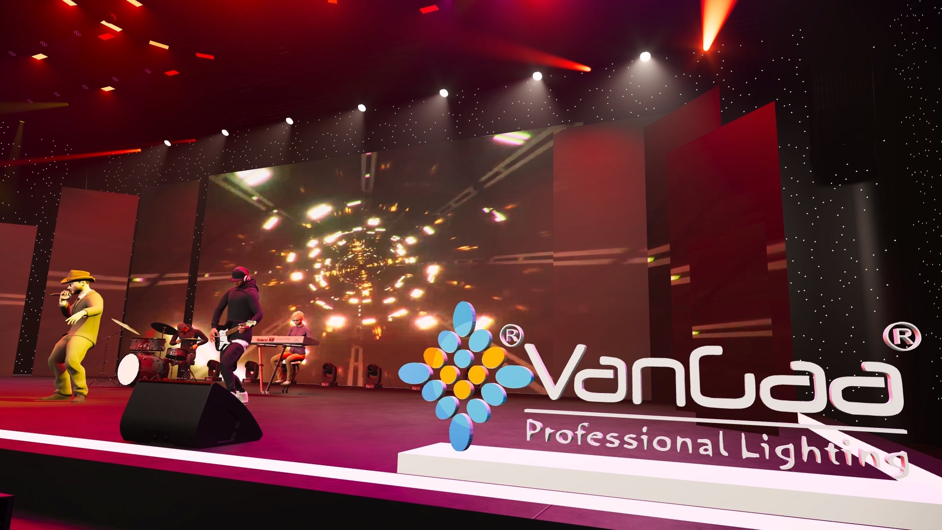 Background (Large Screen/Backdrop): Use color wash lights for coloring, avoiding pure black backdrops that cause oppressive visuals.